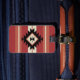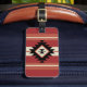 Aztec ethnic bohemian pattern with geometrical shapes in red, orange, grey and black colours on striped background