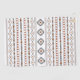 Aztec influenced mixed motifs pattern in red and grey details on a white background.