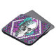 Aztec rose skull on pixel pattern laptop sleeve in teal, pink, and purple.