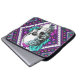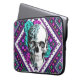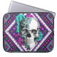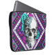 Aztec rose skull on pixel pattern laptop sleeve in teal, pink, and purple.