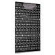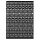 Aztec influenced shapes and line pattern in grey and white detail on a black background.