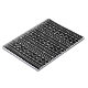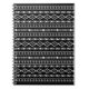 Aztec influenced shapes and line pattern in grey and white detail on a black background.