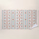 Aztec influenced shapes and line pattern in rust/terracotta colour teal colour detail on a cream colour background.