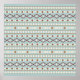 Aztec influenced shapes and line pattern in rust/terracotta colours and a cream colour detail on a teal-blue background.
