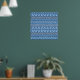 Aztec style pattern in a modern vector digital design in light and dark blues, black and white.