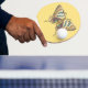 The wings, body, and antennae of a swallowtail butterfly are decorated with patterns found in sculptures and codexes left by and about the Aztec or Mexica. Bright whites, yellows, blues, and reds balanced by browns and blacks paint the geometric shapes and repeating motifs.