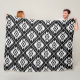 Aztec Symbol Stylised Pattern White on Black Fleece Blanket