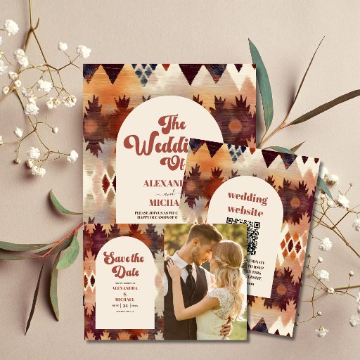This unique invitation is more than just a piece of stationery; it's a gateway to unforgettable moments and cherished memories. With its vibrant Aztec tribal patterns and rich brown hues, this invitation exudes warmth and authenticity, setting the perfect tone for your special day.