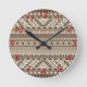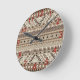 Aztec Tribal Print Neutral Browns Beige Taupe red Round Clock