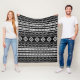 Aztec White on Black Mixed Motifs Pattern Fleece Blanket