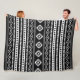 Aztec White on Black Mixed Motifs Pattern Fleece Blanket