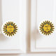 An Aztec, yellow, sun motif made with green and brown highlights. This sun motif could brighten up a home office, den or living space, especially one with tribal home decor.