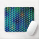 Mousepad gel com imagem de fundo nas cores azul e verde, em diferentes tons e tonalidades sobre imagem de círculo que dá a percepção de ter esferas sob a imagem de fundo.
