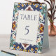 Azulejo blue Portuguese Mediterranean ornate tile pattern wedding table number cards personalised reception table decor