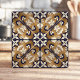 Bring the timeless beauty of traditional Azulejo tilework to your home with this stunning ceramic tile. The design features a symmetrical, stylised floral pattern in cobalt blue and white against a metallic gold background, creating a rich and elegant look. This tile is perfect for adding a touch of Iberian charm to kitchens, bathrooms, backsplashes, or as a decorative accent. Add a touch of class to any home.