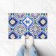 Azulejo Spanish Pattern Tiles Navy White Monogram Doormat