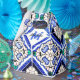 A beautiful vintage design of Azulejo Spanish and Portuguese pattern tiles pattern in navy blue, white and hints of green and light orange. The design can be customised to your matching monogram. A beautiful taste of the Mediterranean perfect for Summer home decor. The perfect rustic geometric mosaico design, ideal gift for any occasion.