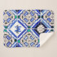 Azulejo Spanish Pattern Tiles Navy White Monogram Sherpa Blanket