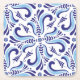 Vintage blue azulejos floral pattern on a white background.