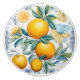 This ceramic knob features a vivid arrangement of golden citrus fruits—some whole, some sliced—surrounded by lush green and blue-tinted leaves and delicate blossoms. Inspired by azulejos, the renowned hand-painted glazed tiles of Portugal and Spain, the design combines botanical realism with fine ornamental detailing, including subtle scrolling flourishes at the edges. The balance of bright yellow fruits, soft greenery, and hints of cobalt creates a fresh yet refined Mediterranean feel.
