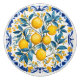 This ceramic knob features a lively cluster of golden lemons nestled among lush green and blue-toned leaves, framed by elegant cobalt-blue and golden-yellow flourishes inspired by azulejos—the timeless hand-painted glazed tiles of Portugal and Spain. The design balances natural realism with ornamental detailing, with sprigs of small yellow blossoms weaving through the composition. The crisp white background enhances the vibrant citrus tones, making the piece a bright yet sophisticated accent.