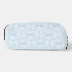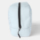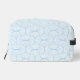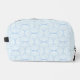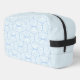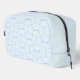 Discover our stylish toiletry bag featuring a sleek geometric pattern of light blue curved lines and petal-inspired shapes against a pale, nearly white background. Perfect for organising your essentials with elegance and modern design.