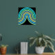 Beautiful contemporary azure blue, aqua turquoise, teal green, and real gold foil coloured geometric abstract wave lines pattern on a black background. Elegant, stylish, and eclectic minimalism design for the artistic hip trendsetter, vintage retro art style, or abstract digital geometric motif lover. Match this design with your interior decor colours and decorate your wall with something exclusive and unique on your wall!
