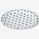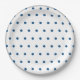Azure Blue polka dots against solid white background colour. Outside geometric circle silver trim. Original Artwork Design © TamiraZDesigns.