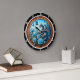 Step into a realm of enchantment with the Azure Dragon Blue Rose clock. This captivating timepiece features a high-definition graphic centred on a majestic, ice-blue dragon nestled among a lush garden of vibrant blue roses. Delicate blue butterflies flutter through the soft sky, adding to the serene, magical atmosphere. The entire scene is held within an intricately detailed, ornate copper-toned carved frame that enhances the mythical aesthetic. While the artwork masterfully mimics the dimensional textures of high-relief sculpture and oil-painted canvas, this is a durable high-definition graphic application on a premium round clock face. It serves as a prestigious and breathtaking focal point for any fantasy enthusiast or as a unique statement piece for a sophisticated home interior.
