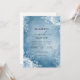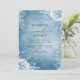 A serene wash of cool blue hues creates a frosted ambiance, accented by delicate white floral outlines and airy foliage. This design evokes a feeling of elegant, winter charm for a special day.
