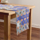 This table runner is adorned with an authentic Habatour Creations azure lattice mosaic geometric abstract pattern design.
