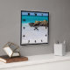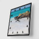 Clock with a beautiful photograph. A white sandy beach, with a gentle surf. Tropical turquoise water surrounds a jagged rock.