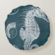 Azure Seahorse Study I Round Cushion