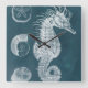 Azure Seahorse Study I Square Wall Clock