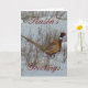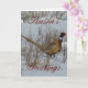 Ring-necked Pheasant "captioned" Card. A beautiful male pheasant in the snow. These multicolored birds are imported and still have a hard time in winter especially when deep snow makes it difficult to find food.