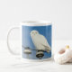 Snowy Owl Mug. In my opinion the most beautiful of the raptors, the snowy owl. Framed by a cold, blue winter sky this magnificent predatory bird with it's huge talons looks for prey from a power pole.
