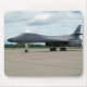 A Rockwell B-1 Lancer jet bomber, nicknamed “bone” (from B-One) , sits on the airport tarmac apron awaiting orders for takeoff to perform an air show demonstration. This supersonic variable-sweep wing heavy strategic bomber is currently in service for the United States Air Force.