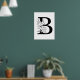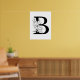 Elegant B letter monogram poster with flowers and lives. Black and white botanical illustration. Initial letter poster nurseries, bedrooms, part of home decor. Personalised gift idea.