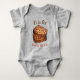 Baby suit features an original marker illustration of a classic bara brith bread, with B IS FOR BARA BRITH in a fun font.