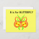 "B" is for Butterfly Alphabet Flashcard Postcard