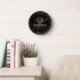 Wall Clock, 25.4 cm Round Black Wooden Frame