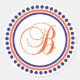 B Monogram Label (Blue / Orange Dot Circle)...This stylish label / sticker would look chic on any card, letter, or invitation. Great idea for a Bridal Shower or Wedding Invitation. Use your new initial on your Wedding Thank You cards. See WindyCityStationery.com for our complete "Dot Circle" line of labels / stickers as well as our complete collection of postage stamps, invitations, save the dates, and more.