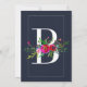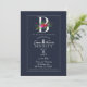 B Monogram Last Initial Modern Blue Floral Wedding Invitation
