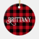 B Monogram Letter Buffalo Check Photo Ceramic Ornament