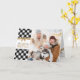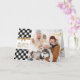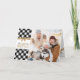 Black and white buffalo check plaid design, titled HOLIDAY CHEER in a brown Kraft paper font with hand-drawn winter foliage and tied neatly with a gold brown bow and features a photo on the front and one inside. The inside greeting is editable and includes your monogram inside and on the back. (PHOTO TIP: For fastest/best results, choose a photo with the subject in the middle and/or pre-crop it to a similar shape as shown BEFORE uploading and it will fill in the photo space provided perfectly.) Contact the designer if you'd like this design modified or on another product.