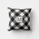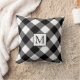 Rustic black and white buffalo check plaid pillow with a monogram and bordered in a black and white square border. The text font and back side colour can be edited to change the look by changing the black background colour to coordinate with your decor. Contact the designer if you'd like this design modified or on another product.