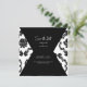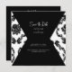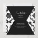Black & White Damask Envelope Style Square. Photo Wedding Save the Date. Back with Bride and Groom Photo last names as well as the text Wedding. Website. Black and white filter applied to photo.