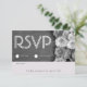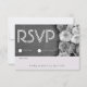 RSVP Enclosure Card featuring delicate florals on a dark wood background.