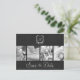 Black and white wedding-themed and motorcycle-themed photos framed by a leather-effect background make this "save the date" announcement a sophisticated, modern choice for biker couples. An open shield shape at the top contains a customisable monogram. All text can easily be changed to suit your own needs.