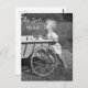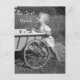 Humourous vintage black and white photo of a child straining to move a cart new address postcard. Customise with all of your personal details and preferences.